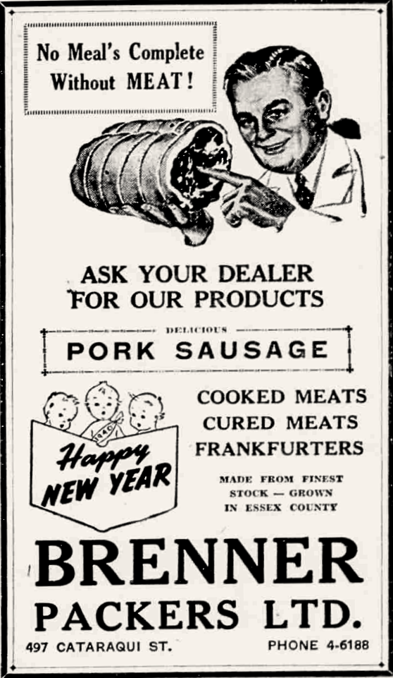 Brenner’s was originally founded in early 1939 under the name Sunset Packers by Frank Brenner. In late 1939, Frank Changed the name to Brenner Packers Limited. The company was still listed in Windsor directories as “Sunset Packers” until 1941.